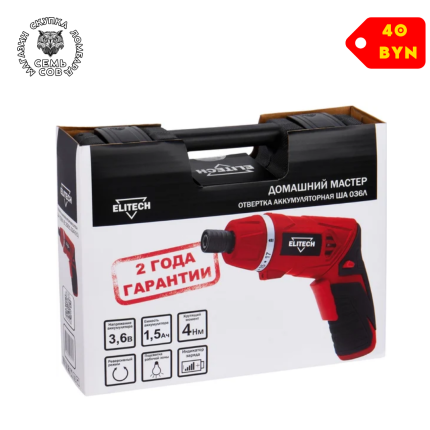 Электроотвертка ELITECH ДМ ША 036Л E2201.024.01 (с АКБ, кейс, набор оснастки)